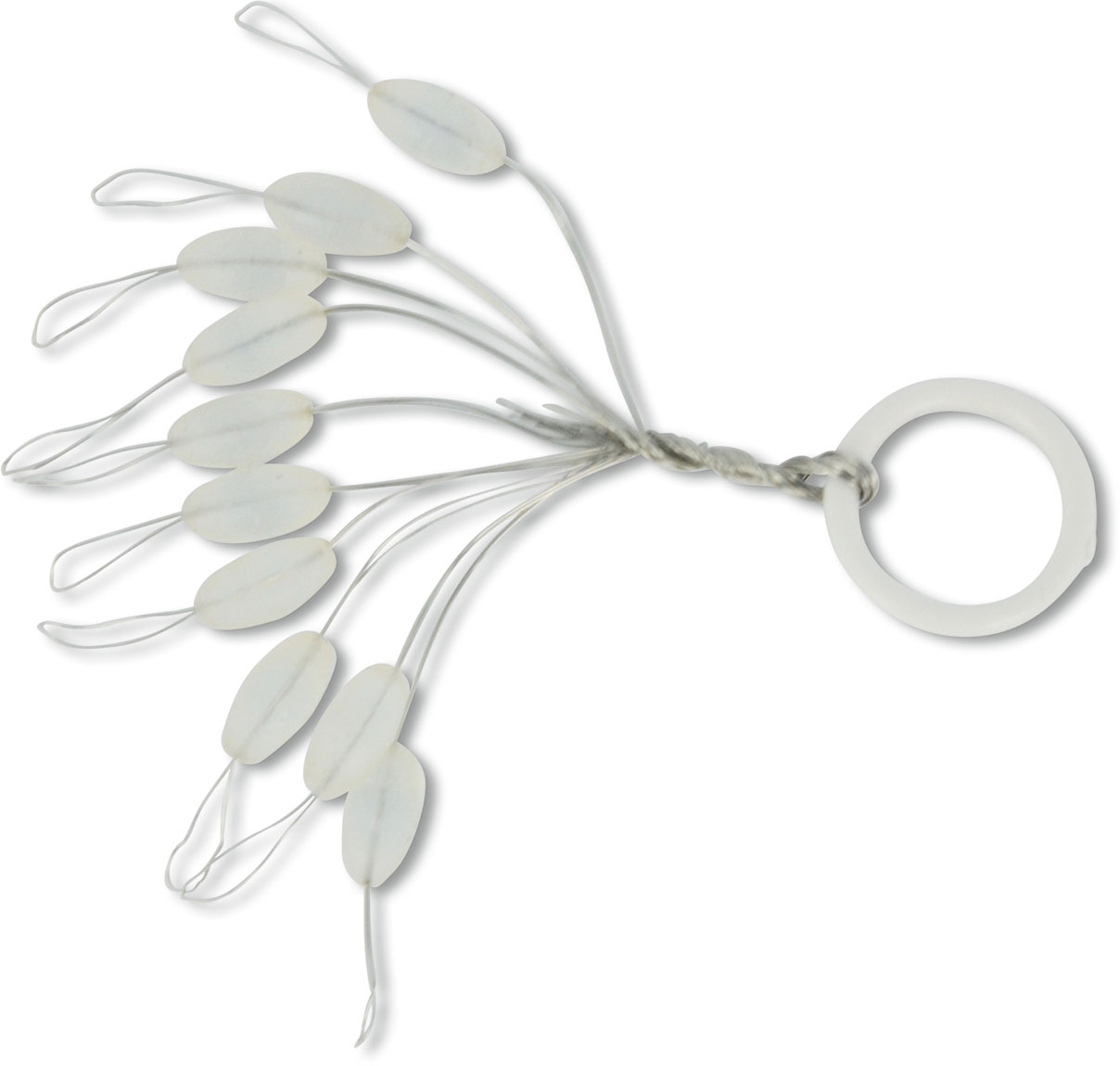 Silicon Stopper, Lang-Oval Robuste Silicon-Stopper mit Einfädelhilfe zur flexiblen und variablen Sicherung und zur Befestigung von Unterwasserposen auf dem Vorfach. Inhalt 10 Stück Länge Lang =10mm Oval =7mm Weiteres zubehör finden sie in unserem Shop!