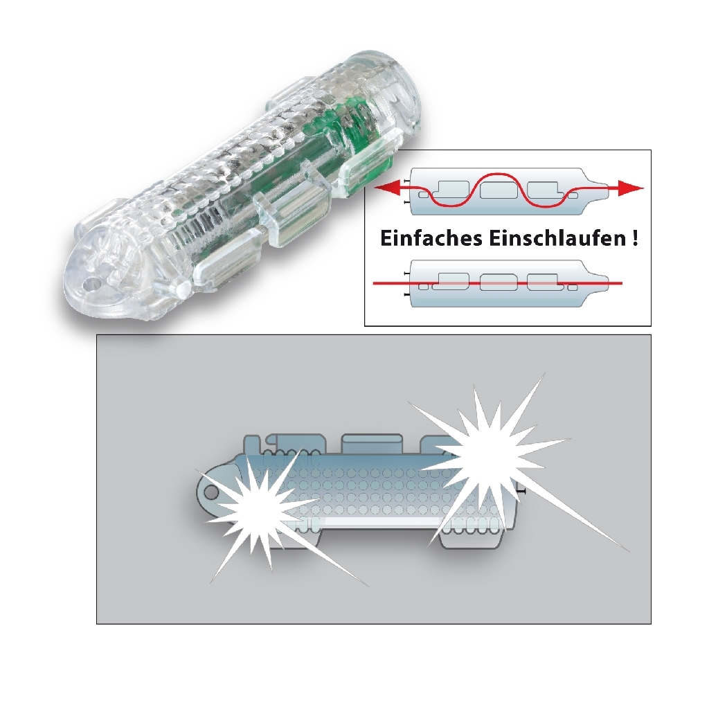 Ein fängiges Additiv für Vorfächer/Rigs. Nur in Verbindung mit Wasser beginnt die Blitzfunktion.