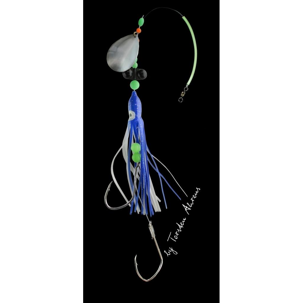 Entwickelt zum Fischen mit Fischfilet, der sog. Flattermakrele, oder einem ganzen Köderfisch. Als Nachlaufsystem wird es hinter einem Seitenarm oder idealerweise hinter einem Durchlauf-Running-Boom System gefischt.
