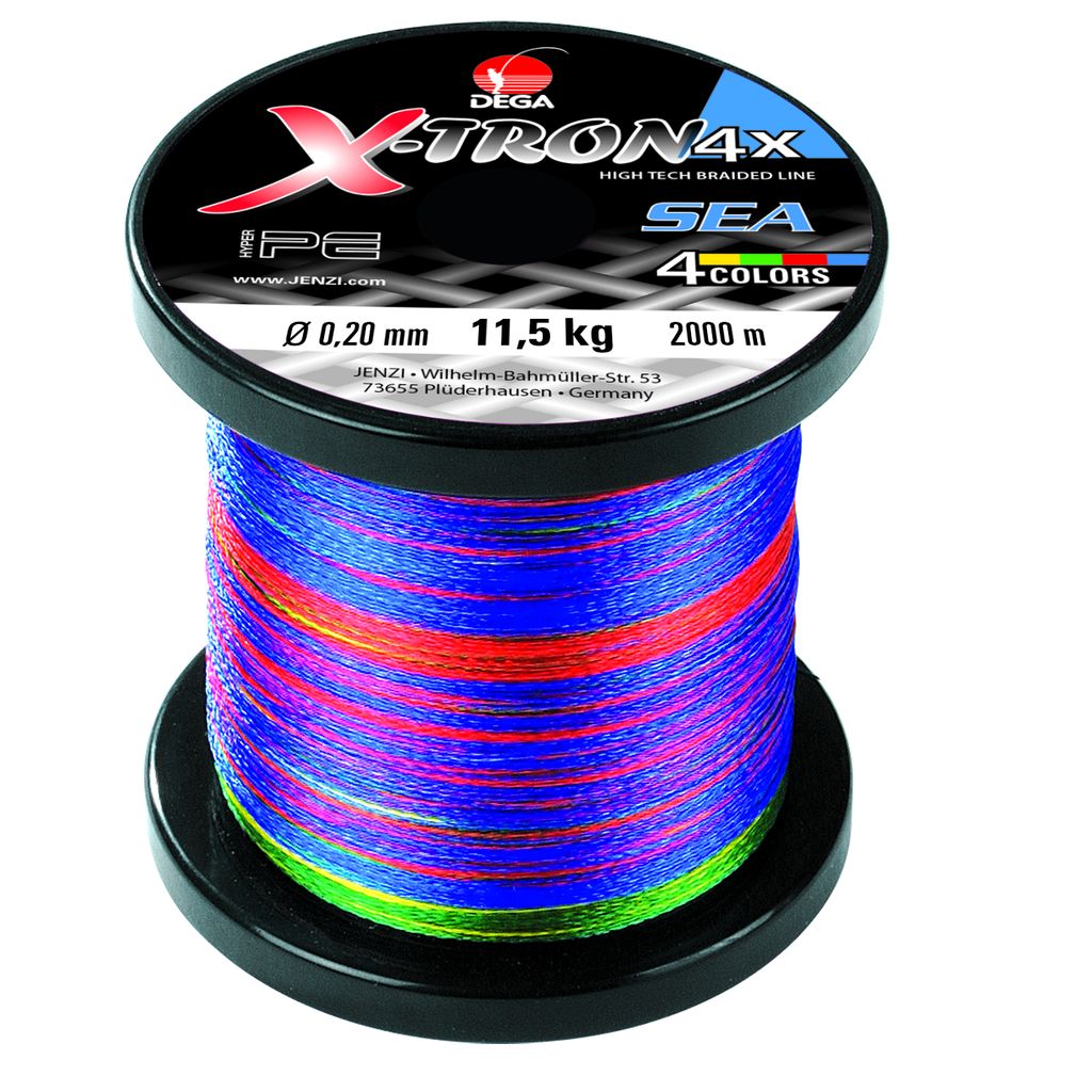 - die 4-fach geflochtene X-TRON Sea 4-farbige Schnur bietet aufgrund ihrer 4 Stränge eine sehr hohe Abriebfestigkeit sowie eine hohe Trakgraft, was gerade beim Meeresangeln von hoher Bedeutung ist. Erhältlich in vers.