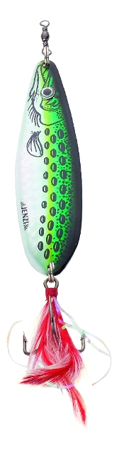 Der `Pike-Blinker`mit seinen 30 Gramm und einer Länge von ca. 18 cm ist der perfekte Köder zum Blinkern auf Hecht & Co. Auch zum Schleppfischen gut geeignet. Seine leicht gewölbte Körperform, der hochwertige Mustad-Haken mit Reizfedern und seine taumelnde Laufeigenschaft ist das Grundrezept für Ihren Erfolg.