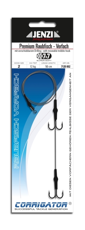 Hecht-Raubfisch-Vorfächer Raubfisch-System ,7x7 Material" Raubfisch-System ,Deluxe" mit 1 festmontierten und 1 verschiebbaren Drilling - Gebunden an beschichtetes 7x7 Wire-Leader Material.