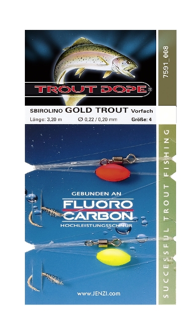 JENZI TROUT DOPE Vorfächer sind an Fluoro Carbon Schnur gebunden, um im Wasser in erster Linie nahezu unsichtbar zu wirken. Ein verstellbarer, schwimmender Bissanzeiger signalisiert direkt jegliche Bewegung des Köders. Der Anbiss macht sich durch einen kleinen Ruck in der Rutenspitze oder dem intigrierten Bissanzeiger bemerkbar. PETRI HEIL!