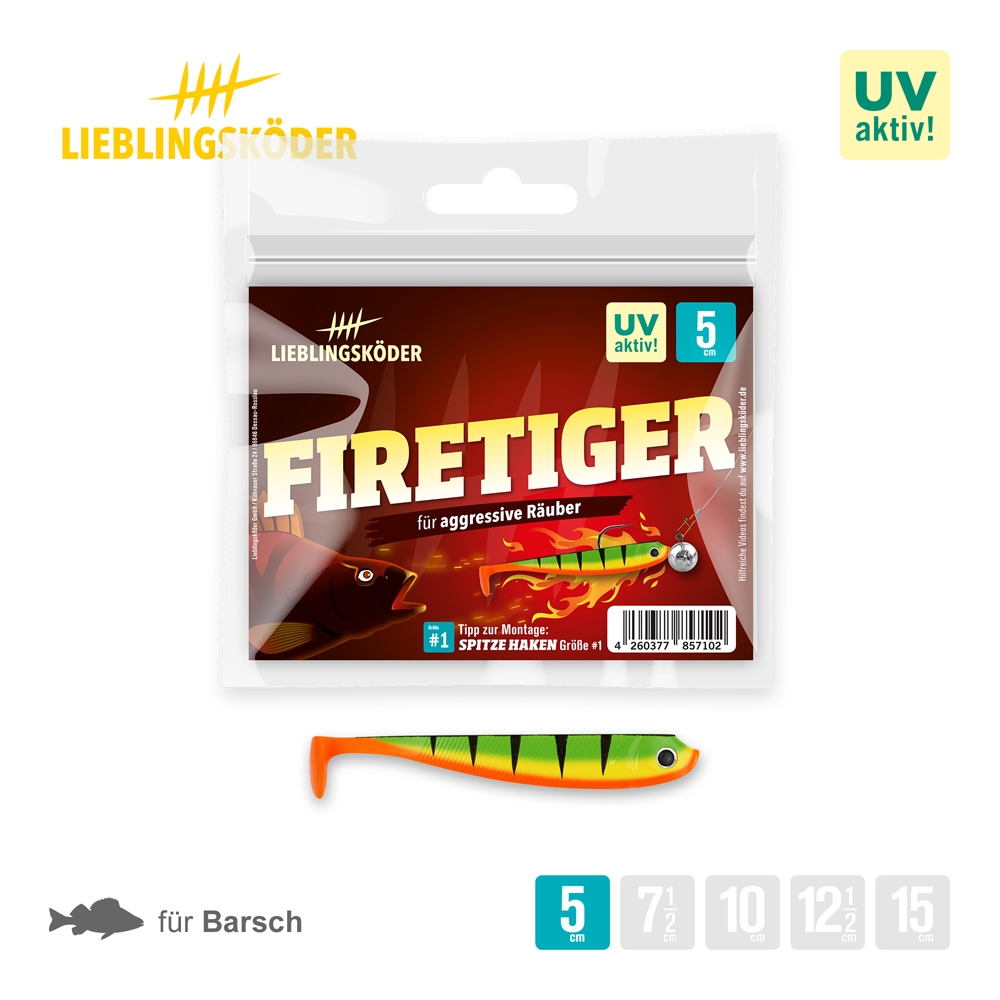 Firetiger - Bei der Entwicklung unserer bisherigen Köder haben wir uns vorrangig auf Zander konzentriert. Dass der Captain, der Sheriff oder Mr. Black auch hervorragend auf Hechte funktionieren, war keine Absicht, sondern ein sehr willkommener Nebeneffekt. Mit dem Firetiger haben wir nun eine aggressive Farbe entwickelt, die vor allem Hechte im Spätherbst und nach der Schonzeit anspricht. Dieses Dekor ist mit seinen flammend leuchtenden Farben (Fire) und den markanten barschartigen Streifen (Tiger) perfekt zum Hechtangeln geeignet.