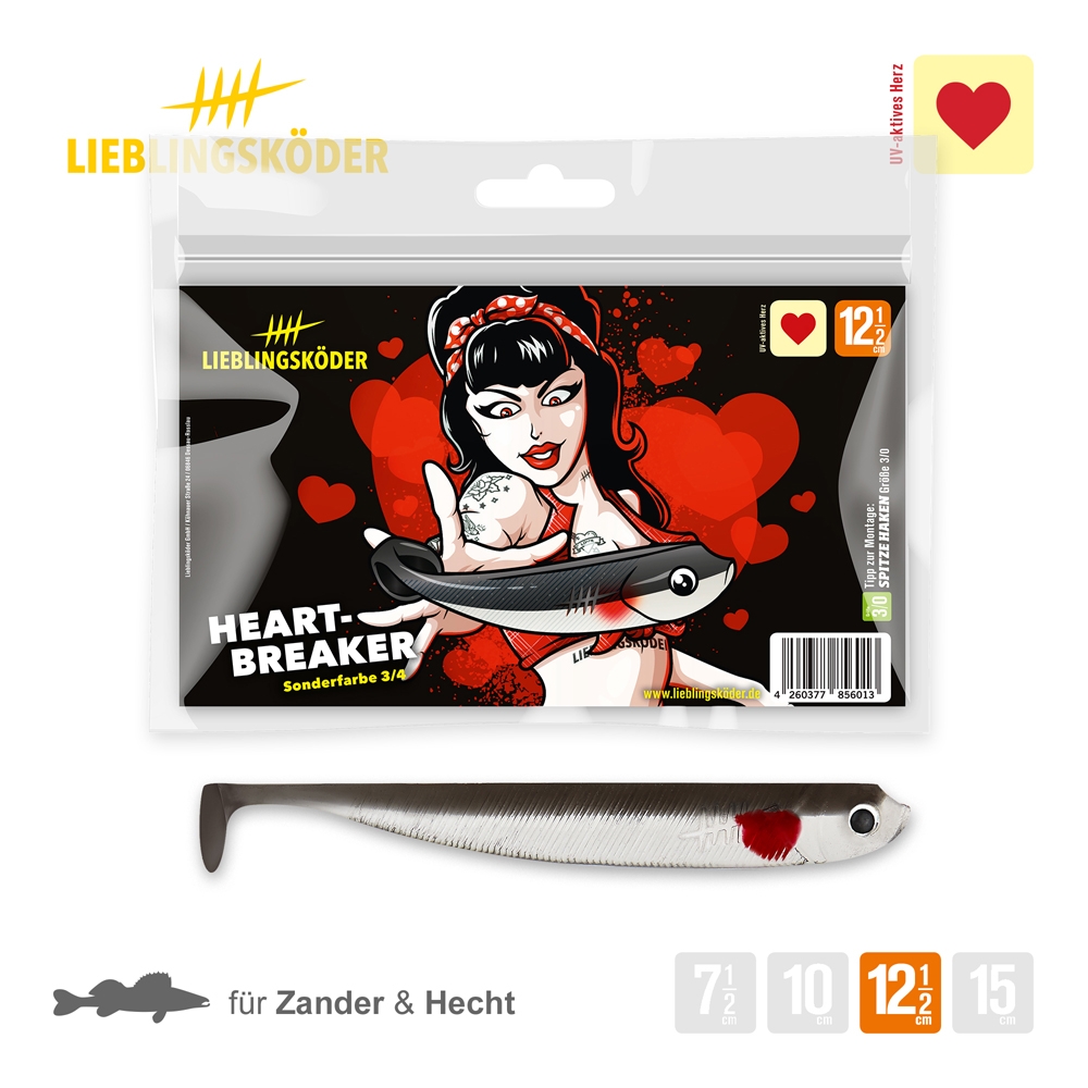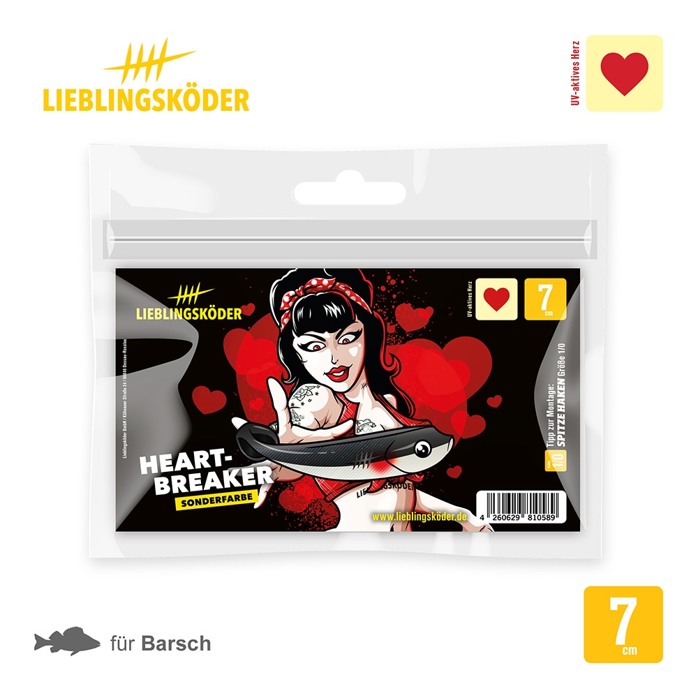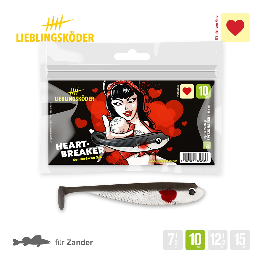 Als besonderes Highlight hat der Köder ein leicht uv-aktives Herz eingegossen, wie es gerade bei kleinen Brutfischen oft zu sehen ist. Diesen Leckerbissen empfehlen wir für klare Gewässer sowohl bei leicht bedecktem Himmel, als auch bei Sonnenschein.