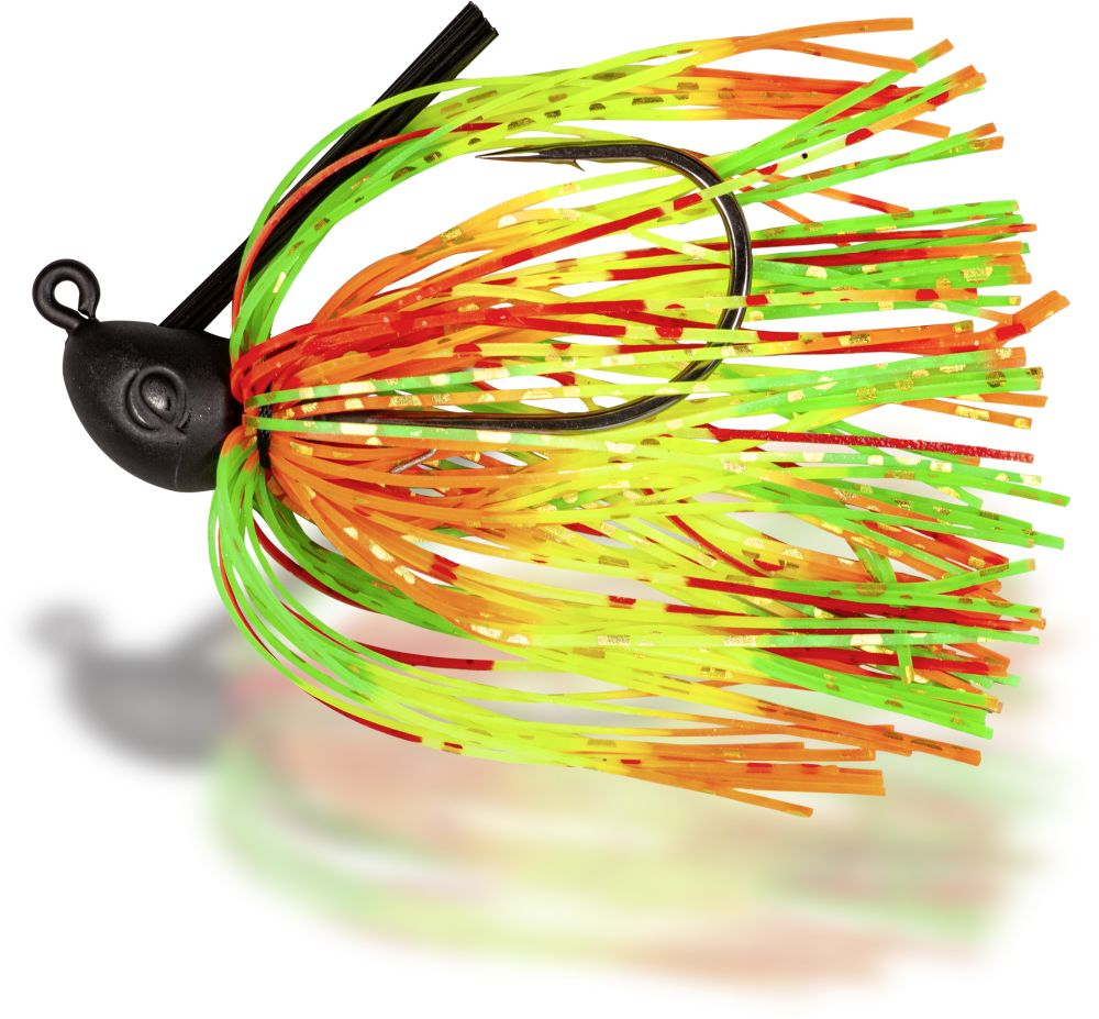 Zudem verhindert der flexible Krautschutz vorn am Kopf das Festsetzen des Jigs zwischen Hindernissen und hält den Haken auch frei von Dreck und Pflanzenresten. Erhältlich in vier Gewichten und fünf leckeren Farben