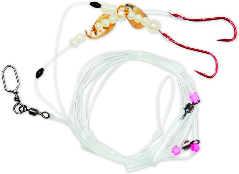 Hakengröße 1/0, Hauptschnur Ø 0.70 mm, Vorfachschnur 0.40 mm. Für die Boots- und Brandungsangelei. Lieferung auf Aufwickler.